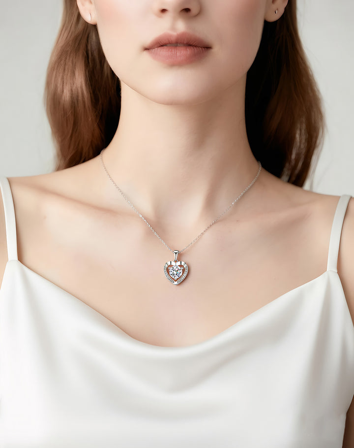 - Heartfelt design: This moissanite diamond in the heart symbol of forever love and devotion, represent commitment, or a milestone in a relationship. You give your wife or girlfriend a necklace that she can wear with confidence, happiness, knowing it will maintain its beauty over time